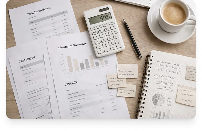 Onze specialisten houden een transparante boekhouding bij van alle kosten en verstrekken alle bonnen en relevante financiële documenten aan de klant. Als de klant op dit moment niet zelf de financiële documenten kan verkrijgen of het uitvoeringsproces kan controleren, verstrekken wij alle rapportages in elektronische vorm en kunnen we online de resultaten van elke fase van de uitvoering laten zien.